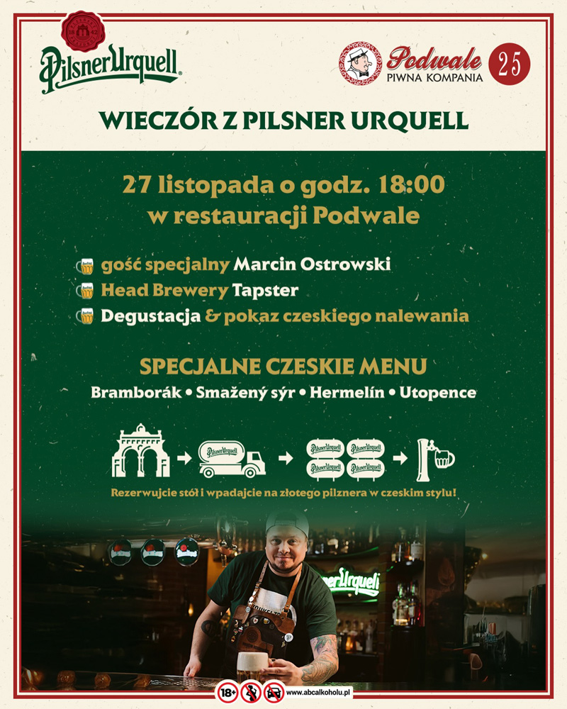 Do każdego z tych dań idealnie pasuje Pilsner Urquell, który podamy w najczystszej czeskiej tradycji: z idealną pianą, odpowiednią temperaturą i właściwym nalewem.